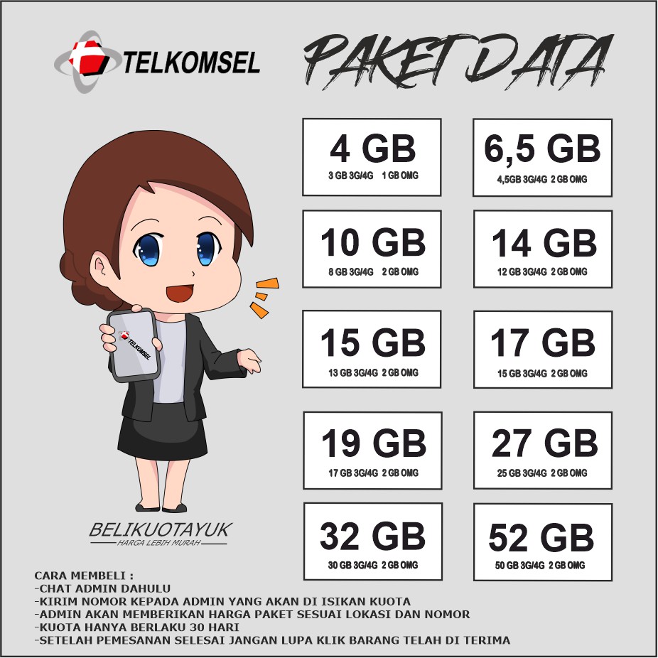Ada 289 variasi paket internet telkomsel murah 2020. Masa aktif paket sms telkomsel harian bukan dihitung 24jam, melainkan berdasarkan hari/tanggal yakni mulai dari jam 00:01 hingga 23:59 dihari/tanggal yang paket sms telkomsel gift tersedia dalam 2 pilihan, yaitu: Ketersediaan kuota tergantung pada jenis paket yang anda pilih. Nikmati kemudahan pembelian kuota simpati / loop dengan berbagai metode pembayaran seperti transfer, cc, di indomaret hingga alfamart. Paket paket kuota diatas sudah disediakan oleh pihak telkomsel jika anda menginginkannya anda bisa membelinya, paket kuota internet super murah telkomsel diatas didapat dari web resminya, jadi jangan takut anda ketipu atau lain hal sebagainya.